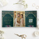 Teal Gold Peacock Pattern Floral Indian Wedding Tri-Fold Invitation