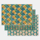 Teal Gold Pineapple Hibiscus Tropical Flowers Wrapping Paper Sheets