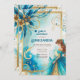 Teal Gold Quinceañera Dress Invitation