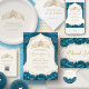 Teal Gold Royal Crown Floral Quinceanera Invitation