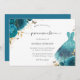 Teal & Gold Sparkle Dress Rose Quinceanera Party Invitation