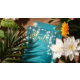 Elegant Faux Gold Foil Lettering Script and Vintage String Lights with Turquoise Blue Glitter Sparkle Background.