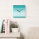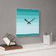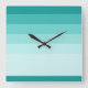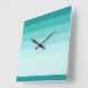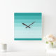 Wall clock with a soothing design of horizontal teal stripes that gradate from dark to light. Pleasing design as is but also a great background for adding your own photo and/or text if you would like to customize it further.