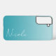 A custom personalized Samsung phone case in a modern teal blue gradient design. The trendy handwriting script font adds a unique touch when adding your name.
