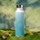 A custom personalized stainless steel water bottle in a modern soft teal gradient design. The trendy handwriting script font adds a unique touch when adding your name.