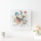 Teal Gray Blue Beige Rust Red Abstract Art Pattern Square Wall Clock