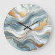 Teal Gray Blue Gold Marble Art Pattern Large Clock