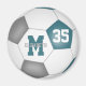 This soccer team colors magnet for boys or girls features the image of a realistic soccer ball, with the typically black panels recolored teal and gray, upon which you can easily customize the athlete's name, monogram & jersey number - by katz_d_zynes