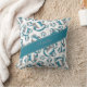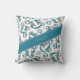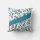 This cool volleyball team colors throw pillow for girls features a pattern of varied size stylized teal, gray and white volleyballs turned every which way overlying a volleyball net detail graphic - the volleyballs' teal & gray panels are blended with an artsy, girly floral pattern - personalize her name in a sophisticated handwritten font on a bold, angled, full width teal color strip - background and name strip colors are customizable - by katz_d_zynes