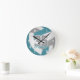 This cool volleyball themed wall clock features a realistic looking volleyball graphic with teal, gray and white panels and overlying clock face numerals - customize with the athlete's name and jersey number - by katz_d_zynes
