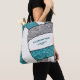 This team colors volleyball shoulder tote bag for a female coach features the image of an abstractly oversized volleyball that has teal, gray and white panels, upon which you can customize the coach's name, team name and mascot name and sports season year/years - the volleyball's teal and gray panels are blended with a floral kaleidoscopic pattern for an artsy, textured appearance that is girly but sporty - by katz_d_zynes
