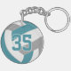 This team colors volleyball themed keychain for boys or girls features a realistic looking teal, gray and white volleyball upon which you can customize the player's name, jersey number and court position, plus school or club name and mascot name in a varsity letter style font - by katz_d_zynes