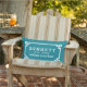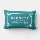 Rich teal meets timeless style on this outdoor lumbar pillow featuring a white Greek key border surrounding your personalized family name, established year, and Welcome to Our Home message. The sophisticated geometric frame gives this pillow a refined, preppy look that elevates any outdoor living space. All text is fully customizable.