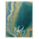 Teal Green Agate Marble Abstract Name Monogram Notebook