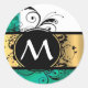 Teal green and gold monogram classic round sticker