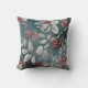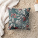Deep teal blue colors with red berries and gray to silver leaves, perfect pillow for winter decorating, new design with gentle colors