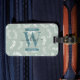 Teal Green Botanical Leaves Monogram Luggage Tag