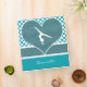 Checkered gymnastics binder with a teal and white design. A big teal green heart has a gymnast silhouette inside! Add your own text before you order! Additionally, use the "customize it" button to access more options, including a different font!