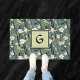 Teal Green Chinoiserie Floral White Initial Doormat