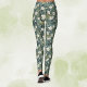 Teal Green Chinoiserie Tropical White Gold Floral Leggings