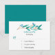 Watercolor cypress leaves and berries in shades of teal green RSVP. Your details are in a lovely calligraphy font incorporating both teal green and dark gray colors. The back of the card is teal green. The template is easy to personalize with your own information.