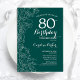 Teal Green Floral 80th Birthday Party Invitation