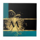 Teal green gold and black monogram ceramic tile