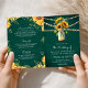 Teal Green Sunflowers Mason Jar QR Code Wedding Invitation