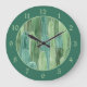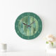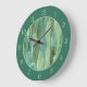 Teal Green Watercolor Cacti Pattern Large Clock