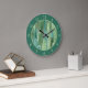 This attractive kitchen clock features a pattern of dark green, pale green, and teal cacti in watercolor tones. At the perimeter is a solid matching circle area with numbers to make it easy to read. Perfect for a southwestern or western style decor. Be sure to see the matching products, including towels and place mats, in our store