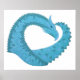 Teal heart dragon on white poster