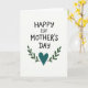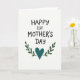 This card features the message “HAPPY 1ST MOTHER’S DAY” centered near the top in rounded black letters that feel gentle and welcoming. The words sit on a bright white background, giving the design plenty of breathing room and a calm, open look. The letter shapes have a slightly drawn-by-hand look, like someone took extra care with each curve ❤️. Beneath the text, a deep teal heart sits in the middle, steady and full, like a quiet promise of care. Two matching green leafy sprigs rise on either side of the heart, curving upward as if they’re leaning in for a soft embrace. The simple oval leaves and balanced layout add a tender, close-knit feeling, like a warm glance shared between loved ones 🌼. The teal heart is framed by the emerald branches in a neat half-wreath shape under the centered black headline.