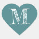 Teal Heart Minimalist Monogram Initial sticker featuring a white textured serif letter centered on a soft teal heart. The simple, balanced design is ideal for sealing envelopes, decorating wedding stationery, labeling favors, or adding a clean accent to gift wrap and packaging. Its fresh color and classic initial style suit weddings, showers, anniversaries, and thoughtful personal touches. Easily personalize with your details.