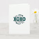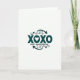 This greeting card features a white background with deep teal lettering and simple line art that keeps the focus on the message. In the center, the large text reads “XOXO” in a straightforward, sans-serif style, and the second “O” is replaced by a small white heart shape. Just below, “HAPPY VALENTINES DAY” appears in smaller teal letters, lined up neatly under the main word. Around the text, teal arrows and curling lines loop and weave like gentle hugs, adding motion without crowding the space. The strong contrast between the teal and the white makes everything easy to see and gives the card a calm, modern feel. It feels meaningful because it says “love and hugs” in a simple way that works for a partner, a close friend, or someone you miss 🥰. It’s an easy card to give when you want to say “I’m thinking of you” without needing a lot of extra words ❤️. Hope it helps you share your Valentine’s Day sentiments.