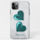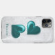 Protect your iPhone with a Teal Hearts Personalized iPhone Case. Case design features a pair of hearts resting on a white leafy vine against a gray grunge background with a place to personalize with your name. Additional items available with this design as well. Please contact me directly for assistance with personalization.