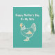 This card features a muted teal background that feels calm and welcoming, setting a gentle scene for Mother’s Day. In the lower center, a stylized chicken in side view faces left, outlined in white and filled with a deeper teal covered in small white polka dots. Warm orange details highlight the comb, wattle, eye, beak, legs, and a few tail and wing feathers, adding a cozy, affectionate touch that reads like a fond glance between loved ones ❤️. Above the bird, the message “Happy Mother’s Day To My Wife” appears in flowing white lettering, centered and easy to spot against the teal. The smooth curves of the lettering echo the rounded shape of the bird, tying the layout together without feeling busy. The cool teal and warm orange create a friendly contrast, with the orange accents guiding your eye from the text down to the bird’s face 🌼. The tail feathers are drawn with thin orange lines that fan outward, while the white outline stays crisp around the bird’s dotted body.