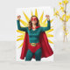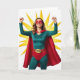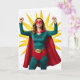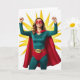 This design shows a full-length woman centered on a bright white background, framed by a large yellow starburst that makes her look like she just stepped into the spotlight. She wears a sleek deep teal jumpsuit with a subtle sheen, paired with a flowing red cape that lifts as if caught by a light breeze, adding a dramatic, affectionate flair ❤️. A slim red eye mask adds a touch of mystery, while her wide smile and lifted cheeks give her an inviting, friendly energy, like she’s cheering someone on. Both arms reach straight overhead with clenched fists, creating a triumphant pose that feels like a shared celebration with the viewer. Around her waist sits a red belt with a golden oval buckle, detailed with small lettering that suggests a special role without needing to explain it. Any headline-style text would sit near the top in a strong red tone, balanced by smaller accent text near the bottom in a warm golden shade 🌼. The cape’s folds sweep outward behind her shoulders, and the yellow burst radiates in sharp points around her torso.
