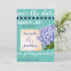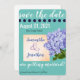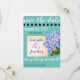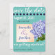 Personalize this save the date card with your wedding date, venue, and names of bride and groom. Card has a teal, navy and purple color scheme with a hydrangea.