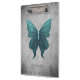Jot down notes and reminders on a secure surface with a Teal Jeweled Butterfly Personalized Clipboard. Clipboard design features a vibrant jeweled butterfly against an elegant vintage gray damask pattern. Additional gift items available with this design as well as a variety of colors.