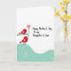 This card features a warm message set on a bright white background, with friendly lettering in a dark tone placed toward the upper right. To the left, two stylized red birds with soft pink wing accents lean toward each other in a way that suggests closeness and affection ❤️. One bird sits on a thin, dark branch that curves upward, as if gently presenting the scene. From the branch, a bright pink heart-shaped balloon rises on a fine string, adding a romantic touch without crowding the layout. Below, the second bird stands on a rolling teal ground that feels calm and supportive, like a shared little corner of nature. Small curling decorative lines in the teal area add texture and movement, like a quiet breeze passing between friends 🌼. The contrast between the red birds, pink details, and cool teal base stands out against the open white space, and the heart balloon floats just above the lower bird near the left side.