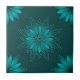 Teal Leaf Mandala Design on Dark Cyan Ceramic Tile