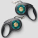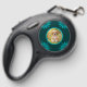 Teal Leaf Mandala Design on Dark Cyan Retractable Pet Leash