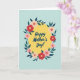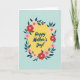 Designed with a soft sky-blue background, this card centers on a slightly uneven yellow circle that feels like a warm spotlight. Around it, a botanical wreath of stylized flowers and leaves wraps in close, like a gentle hug between friends ❤️. The blossoms show soft rose, blush apricot, and deeper red tones, each with small yellow-to-orange centers that add a cozy, affectionate glow. Deep teal leaves and curling green tendrils weave through the ring, creating a calm contrast that keeps the floral shapes feeling tender and connected. Inside the yellow circle, the message sits centered in flowing deep blue lettering, easy to spot at first glance. A pale cream border with a lightly worn texture frames the whole scene, like aged paper that’s been kept in a drawer with treasured notes. The wreath’s petals, teal leaves, and green curls encircle the yellow center against the sky-blue field, with tiny warm flower centers dotted throughout 🌼.