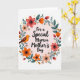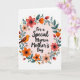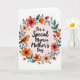 This design shows a circular floral wreath wrapping around a soft blush-pink center, like a gentle hug on the page. The wreath is filled with large coral, orange, and peach flowers, each with a darker center, mixed with teal-green leaves and a few small buds for extra texture. A small bird sits on the left edge of the ring, colored in warm golden-orange and russet, and it carries a tiny pink heart on its wing ❤️. The bird’s sideways gaze toward the middle adds a sweet, companionable feel, as if it’s quietly sharing the moment with someone close. In the blush center, the main message appears in flowing black lettering, placed neatly in the middle of the circle. Around the wreath, scattered yellow dots and a few subtle starburst shapes add a light, celebratory sparkle 🌼. The background stays light and airy, letting the botanical ring and the centered black text stand out clearly. The flowers show layered petals in warm tones, with teal leaves curling between them and tiny yellow specks floating nearby.