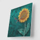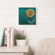 Teal Leather Tooled Yellow Sunflower Square Wall Clock