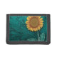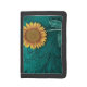 Teal Leather Tooled Yellow Sunflower Trifold Wallet