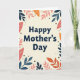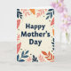 Designed with a creamy off-white background, this Mother’s Day card centers the words “Happy Mother’s Day” in dark blue, simple sans-serif lettering. The message sits comfortably in the middle, leaving airy space around it so the greeting feels calm and steady ❤️. Around the edges, a leafy border wraps the text like a gentle hug, with stylized foliage that leans inward as if watching over the words. The leaves are colored in muted coral pink, deep teal, and warm burnt orange, creating a friendly, cozy contrast against the pale backdrop 🌼. Small deep-brown dots and soft circular accents are tucked between the leaves, adding a quiet, confetti-like touch without crowding the design. The overall layout feels like a tender moment shared in a garden, where the surrounding shapes seem to gather close in support. The border forms an organic frame with layered leaves and scattered dots that continue evenly around all four sides.