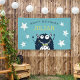 Celebrate your little one's birthday with this adorable monster themed birthday party banner feature a dapper monster sporting a lime green bow tie, on a cheerful turquoise background. Personalize with a custom message and the birthday boy's name in navy blue and lime green lettering. Designed to match our Little Monster birthday party invitations and accessories,