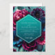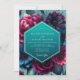 This design features a dramatic and opulent floral arrangement. Vibrant magenta roses and deep indigo dahlias bloom from a shadowy background. The rich, jewel-toned palette creates a sophisticated and moody atmosphere, perfect for a romantic evening affair.