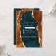 Teal Marble, Burnt Orange & Gold Agate RSVP Invitation